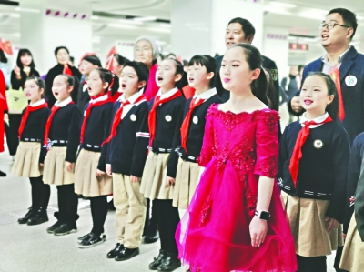 活动主角是一群来自武汉市育才实验小学的学生。当孩子们在民乐伴奏下唱响《歌唱祖国》时,他们惊喜地发现军运会吉祥物“兵兵”还有全国敬业奉献道德模范王争艳,海军工程大学教授、博士生导师蒲金云,中国科学院武汉物理与数学研究所研究员雷皓也加入了他们的队伍,受到鼓舞的孩子们唱得格外起劲,引得来往路人驻足观看。