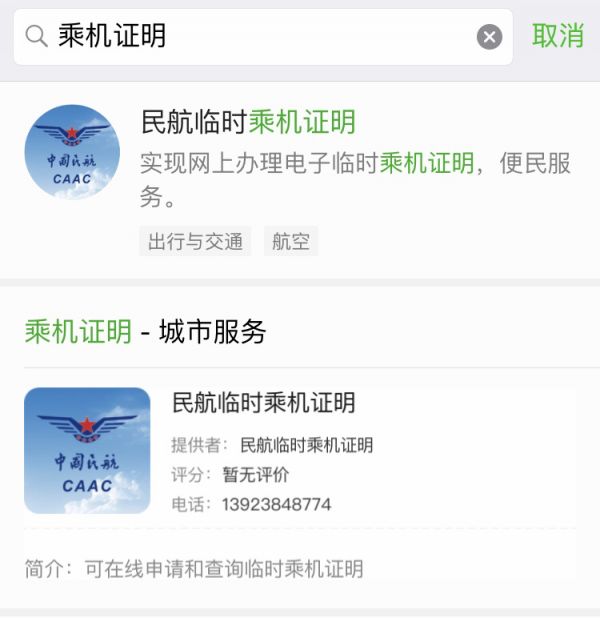 电子乘机证明小程序